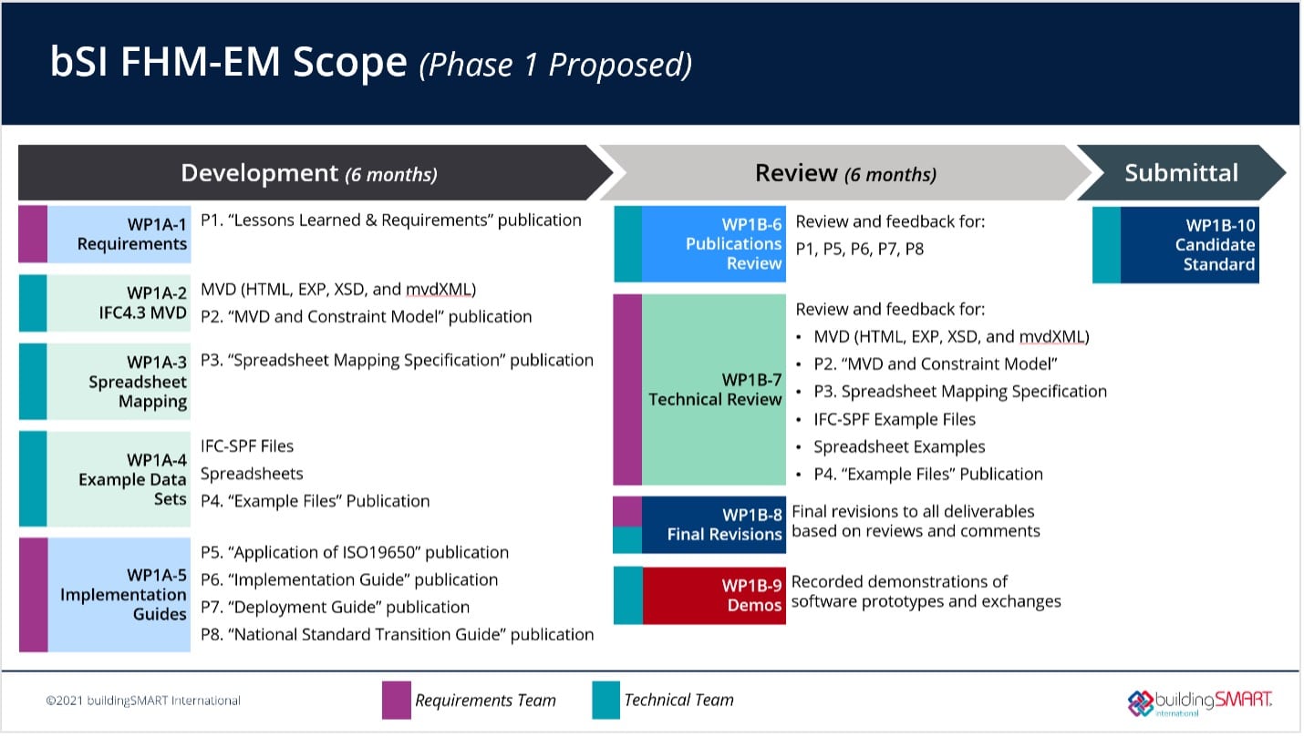 The bSI "Basic FM Handover Model View Definition," published in 2009 and based on IFC2x3, set the stage for what would become the world-wide adoption of independently created national specifications. As these specifications grew is scope and became more widely used, a significant body of lessons learned in their implementations have been documented. In 2020, bSI began this project to recalibrate the growing bifurcation of national specifications from an international basis and re-establish the effort under international governance, refocused scope, and emphasis on global adoption with explicitly specified, but compatible, customization options for localized use.