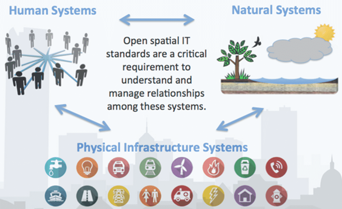 Human, natural, and physical systems interact in space and time, and the digital systems in cities will become increasingly diverse and numerous, with many owners. Cities thus need an open, vendor-neutral standards platform for communicating spatial and temporal data. Many of the longstanding technical boundaries separating indoor, outdoor, underground and atmospheric information have been overcome. The FutureCities Pilot will show how cities can begin to reap the benefits.