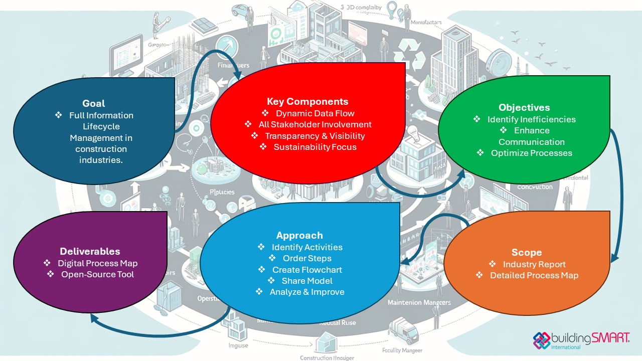 To address this, buildingSMART International's Product Domain proposes a project to develop a comprehensive process map to analyze information lifecycles within specific processes and use cases. This recognizes untapped efficiency potential beyond "design and build" phases.