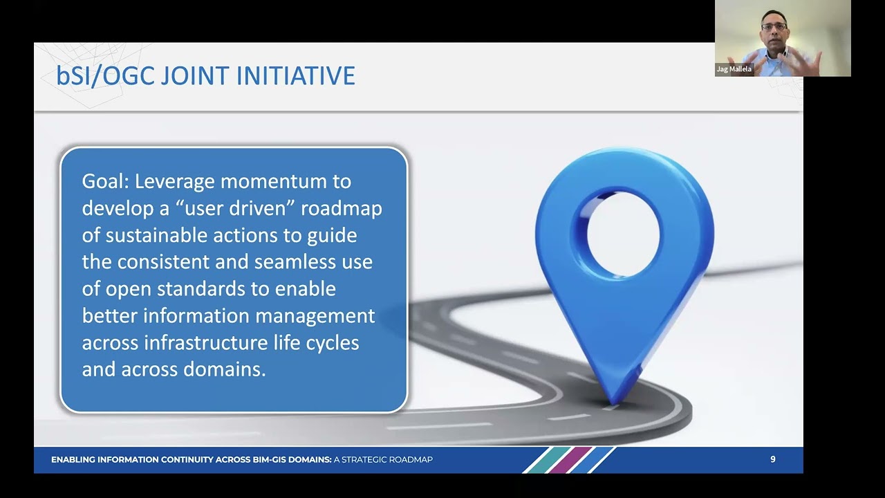 This webinar presents insights from members of the working group regarding the collaborative effort between bSI and OGC through their joint roadmap, which aims to enhance alignment between the two industry bodies on this critical subject. Discover how this roadmap has been crafted to capitalize on global momentum, shaping a "user-driven" framework of sustainable actions aimed at facilitating the unified and efficient utilization of open standards for improved information management across various infrastructure domains and life cycles. Learn how the roadmap seeks to showcase the advantages of open data standards and streamline approaches across both industry entities and other international actors.